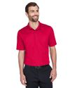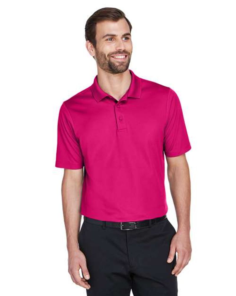 - Proprietary dual-sided mesh pique knit constructed of fine denier wicking polyester on the outside and soft-as-cotton wicking blend on the inside